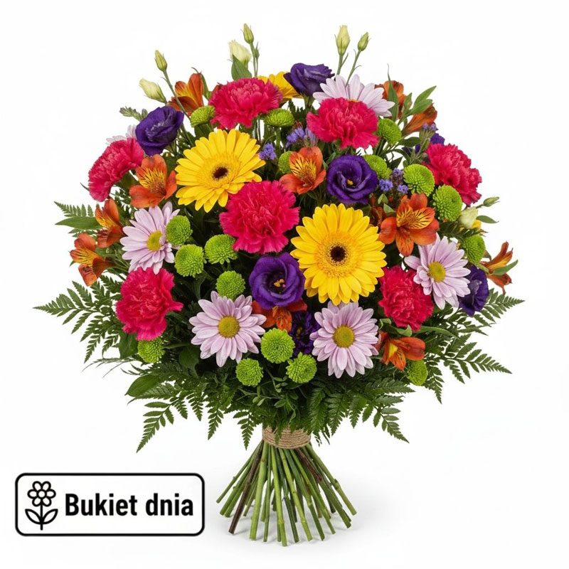 Bukiet Dnia dostępny w Sosnowcu to codziennie inna kompozycja tworzona przez doświadczoną florystkę z najświeższych kwiatów dostępnych danego dnia w kwiaciarni. Każde zamówienie realizowane jest indywidualnie, a dobór kwiatów, kolorystyki oraz stylu pozostaje w rękach profesjonalistki. W bukiecie wykorzystywane są zarówno kwiaty sezonowe, jak i całoroczne, co pozwala stworzyć estetyczną i harmonijną całość niezależnie od pory roku. To idealny wybór na prezent, gdy chcesz sprawić radość i pozostawić element miłej niespodzianki. Zamów bukiet z dostawą na terenie Sosnowca, a my zadbamy o terminowe doręczenie i wysoką jakość wykonania.