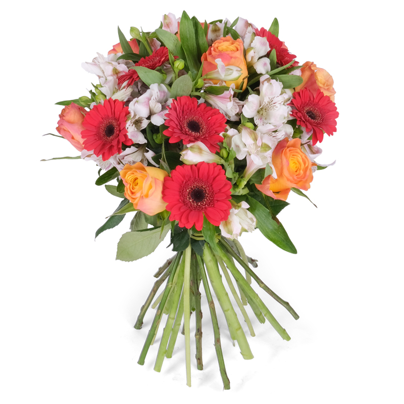 Zawsze świeże kwiaty Damska kompozycja to bukiet, który łączy różnorodne formy i tekstury w jedną harmonijną całość, pokazując jak różnorodność może tworzyć doskonałą jedność. Połączenie róż, alstromerii oraz gerber to idealny wybór dla każdej kobiety!