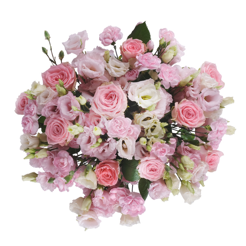 Połączenie klasyki i romantyzmu – róża, eustoma i goździk w różowej odsłonie. "Połączenie idealne" idealnie wybrzmi z dołączonym bilecikiem pełnym ciepłych słów.